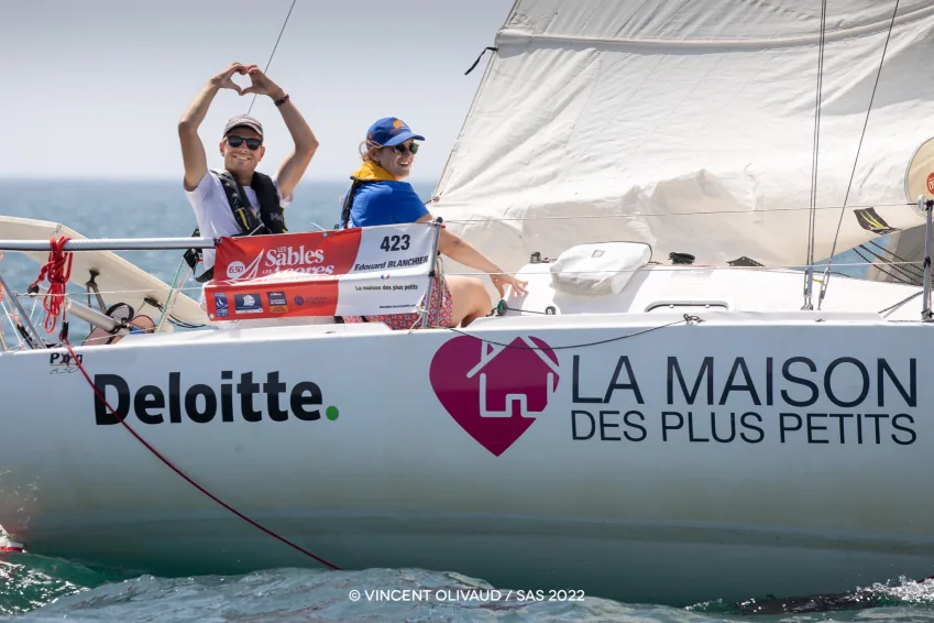 Edouard Blanchier, navigateur, soutient l'association en participant à une régate transatlantique en solitaire aux couleurs de La Maison des Plus Petits.