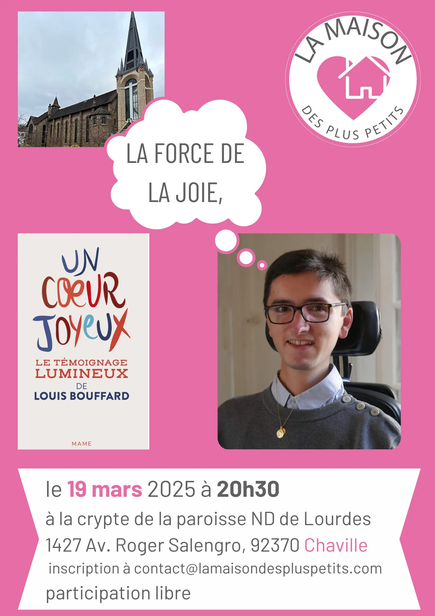 La joie de vivre est contagieuse — venez écouter Louis Bouffard lors d'une conférence organisée le 19 mars à Chaville. Une belle occasion de se retrouver et de soutenir notre association.